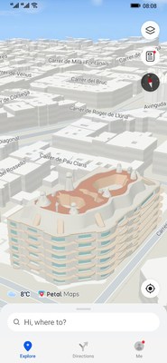 На выставке Mobile World Congress 2022 (MWC) в Барселоне компания Huawei представила Petal Maps — свою новейшую картографическую навигационную систему, предназначенную для мировых рынков. В данном решении эффективно используется аппаратное обеспечение мобильных телефонов и интеллектуальные алгоритмы для предоставления пакета инновационных возможностей картографирования, включая точное позиционирование в помещениях и на открытом воздухе, управление движением по полосам, автономные карты, 3D-архитектуру (с использованием достопримечательностей Барселоны в качестве демонстрации), многотерминальное взаимодействие между смартфонами и часами, а также многочисленные сервисы Nearby Life.