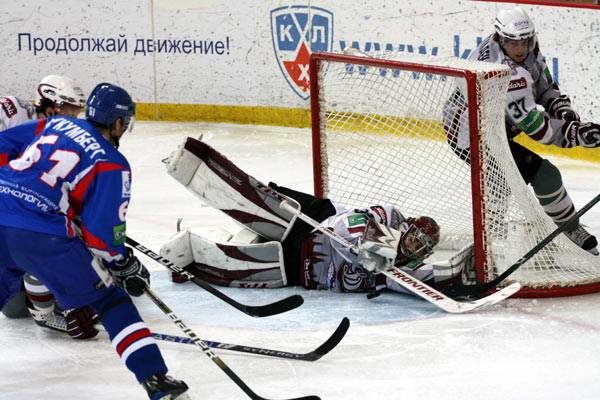 Автором первой заброшенной шайбы были латвийцы. Уже на четвертой минуте поразить ворота Василия Кошечкина смог Янис Спруктс. «Лада», впрочем, быстро отыгралась – в середине первого периода счет вновь стал равным, сравнял его Денис Шемелин. Гости, тем не менее, настроены были по-боевому и перед тем, как уйти на первый перерыв, забросили еще одну шайбу.