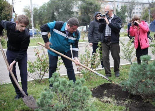 В Тольятти продолжается озеленение школ по благотворительной программе СИБУРа. В преддверии Дня учителя, 2 октября,новые деревья, кустарники и цветы появились в школе №4 Центрального района.